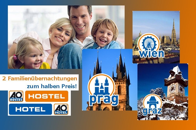 Sichern Sie sich Ihren Gutschein für 2 Familienübernachtungen in Prag, Wien oder Graz und sparen Sie 75,- €!