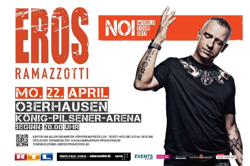 Endlich! Nach drei Jahren Pause ist er wieder da: EROS RAMAZZOTTI 2013 mit neuem Programm live auf Tour!