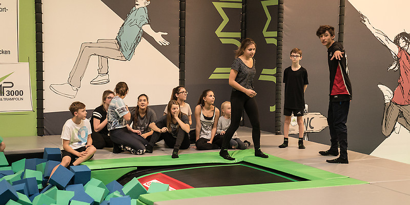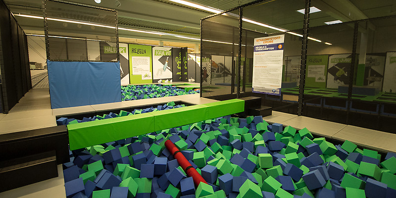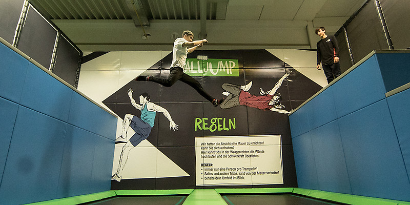 JUMP3000 ist Berlins erster Indoor Parkour und Trampolinpark. Auf mehr als 50 Trampolinen, unterteilt in verschiedene Bereiche, kann man sich austoben, spielen und die Welt des Trampolinspringens entdecken.