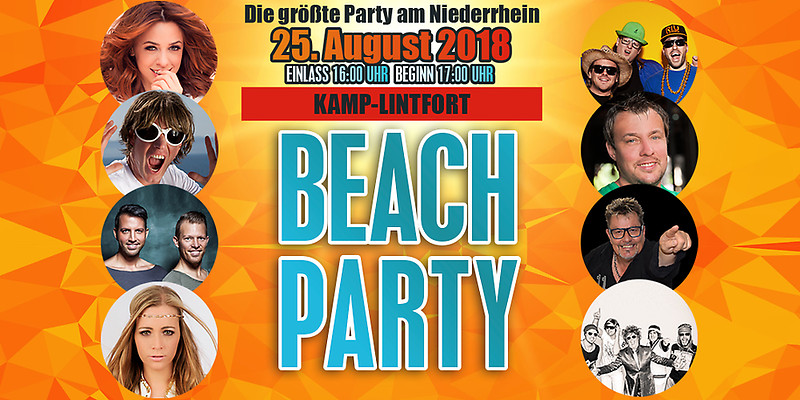 Die Beach Party hat sich in Kamp-Lintfort seit mehr als 20 Jahren zu einer festen Institution etabliert und auch in diesem Jahr verspricht DIE Party der Stadt zu einem großen Erfolg zu werden. Der Eventagentur passepartout , die in diesem Jahr bereits zum 4. Mal als Veranstalter der Beach Party auftritt, ist es gelungen, bekannte Stars der Schlagerszene für das Bühnenprogramm zu verpflichten. 2018 kommen die Fans in den musikalischen Genuss von 8 Künstlern mit ihren Bands. NEU: Dieses Jahr wird die Party von dem Residenz DJ aus dem Mega Park Mallorca "DJ Andy Luxx" moderiert und musikalisch begleitet. Ein unvergesslicher Sommer ist vorprogrammiert!